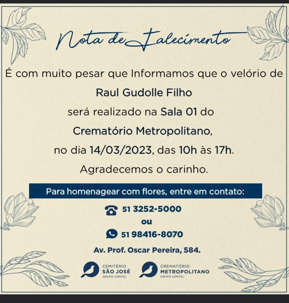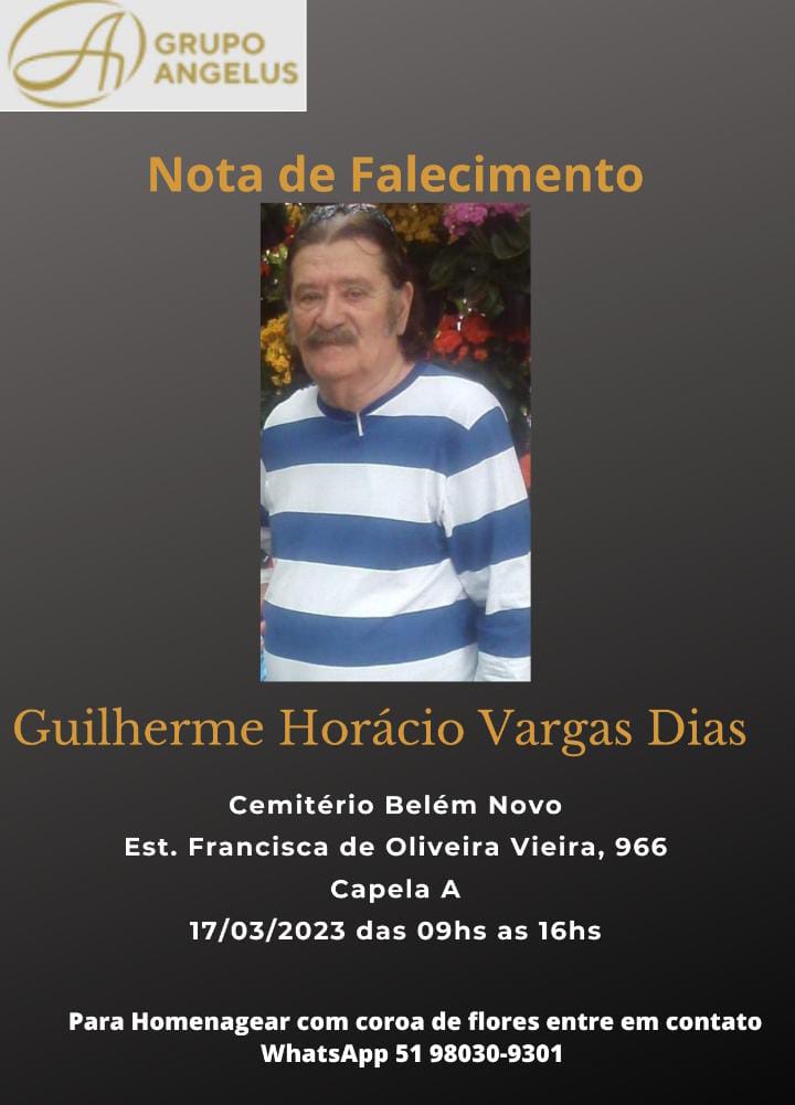 É com muito pesar, que informamos o falecimento de mais um grande turfista: desta feita quem nos deixou foi o "TURFMAN" Guilherme Vargas Dias, ele que além de sócio, era Conselheiro desde 1992, tendo também sido diretor financeiro de 1985 até 1988. Como proprietário venceu centenas de corridas, inclusive foi campeão de estatísticas em nosso hipódromo. Aos familiares e amigos, a diretoria do Jockey Clube do Rio Grande do Sul externa toda sua solidariedade. Por certo nos fará falta a farda "Roxa, faixa, mgs. com lts. hzs. brca., b. roxo/brco".