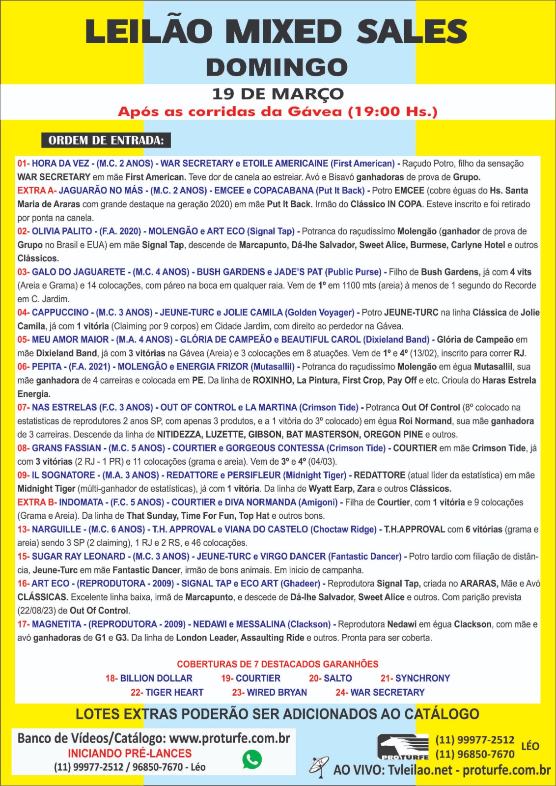1º Páreo às 15:25 ‑ 1.300 (Areia)